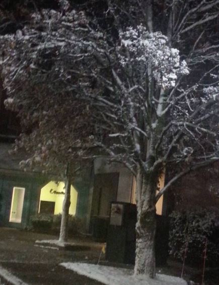 We got our first snow that stayed on the ground. Here is the snow in the tree last night (I know, nothing like the pictures my daughter does):