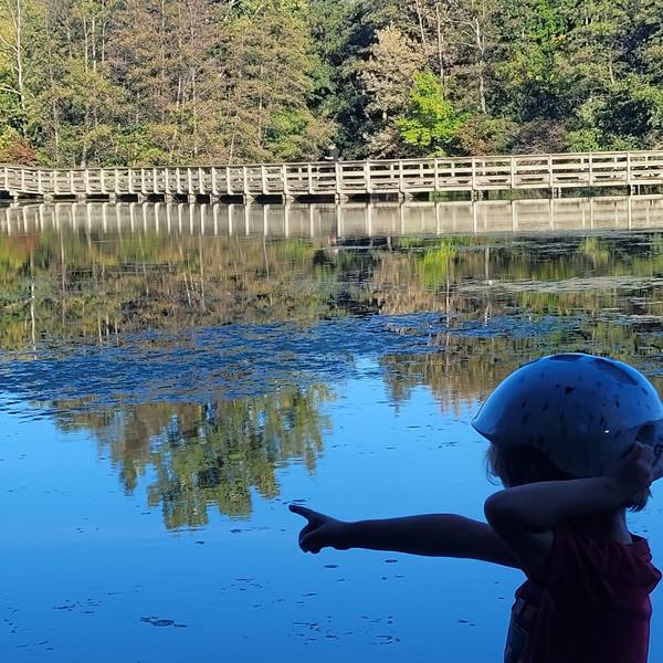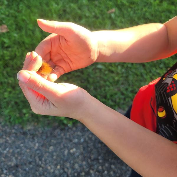 I love the weather right now. Perfect for walks in nature. We have a hint of color. My grandson found a caterpillar.